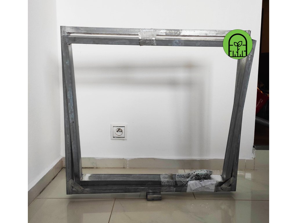 Okno pre skleník je určené na vetranie skleníka a inštaluje sa do strechy skleníka pomocou samorezných skrutiek s pozinkovanou podložkou a gumovým tesnením. Okenné krídlo je vyrobené z pozinkovanej profilovej oceľovej rúry s prierezom 20x20 mm. Sada obsahuje hák na upevnenie okna v otvorenej polohe a samorezné skrutky na upevnenie.